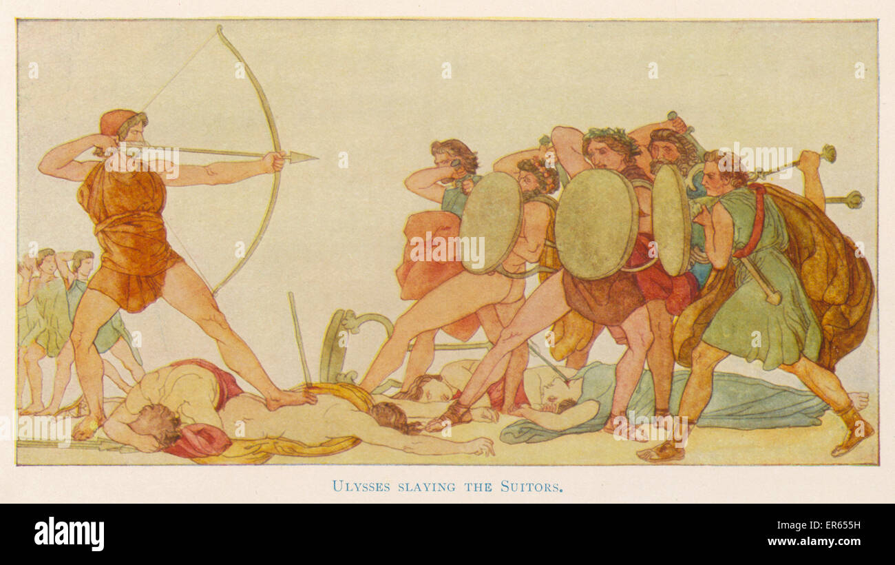 Throwing Off His Disguise And Stringing His Bow Which None Of The Men Could String Odysseus Ulysses Kills The Suitors Of His Wife Penelope At Ithaca Stock Photo Alamy
