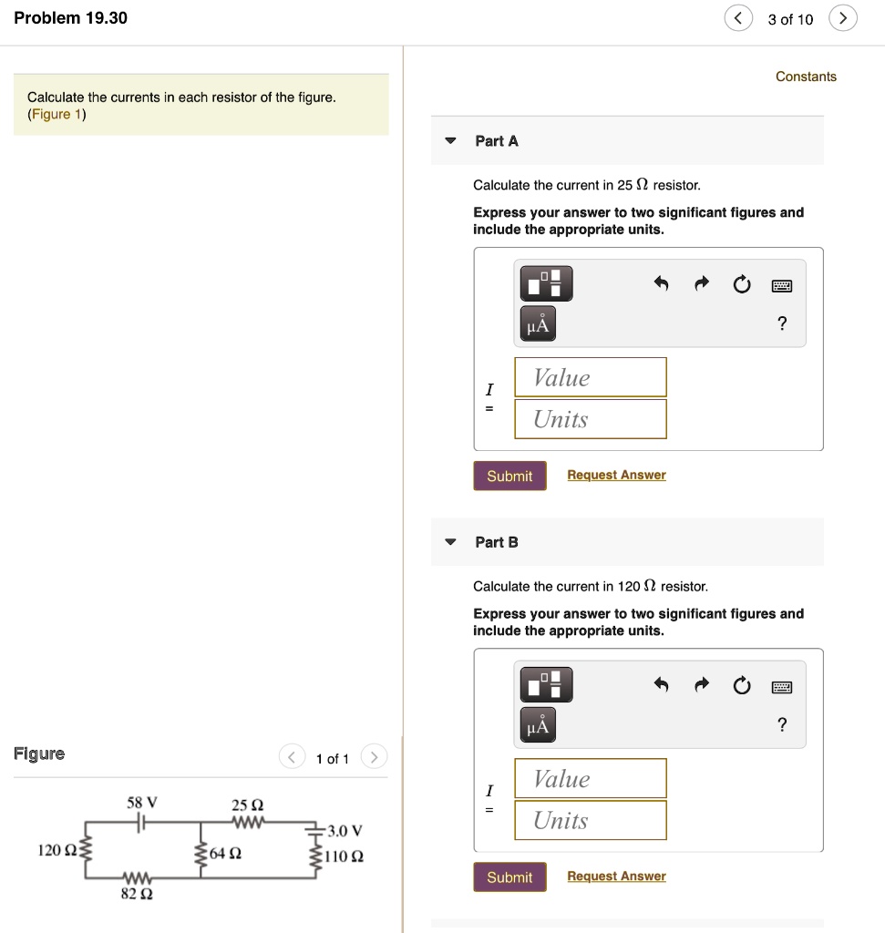 Solved Problem 19 30 3 Of 10 Constants Calculate The Currents In Each Resistor Of The Figure Figure Part A Calculate The Current In 25 2 Resistor Express Your Answer To Two Significant